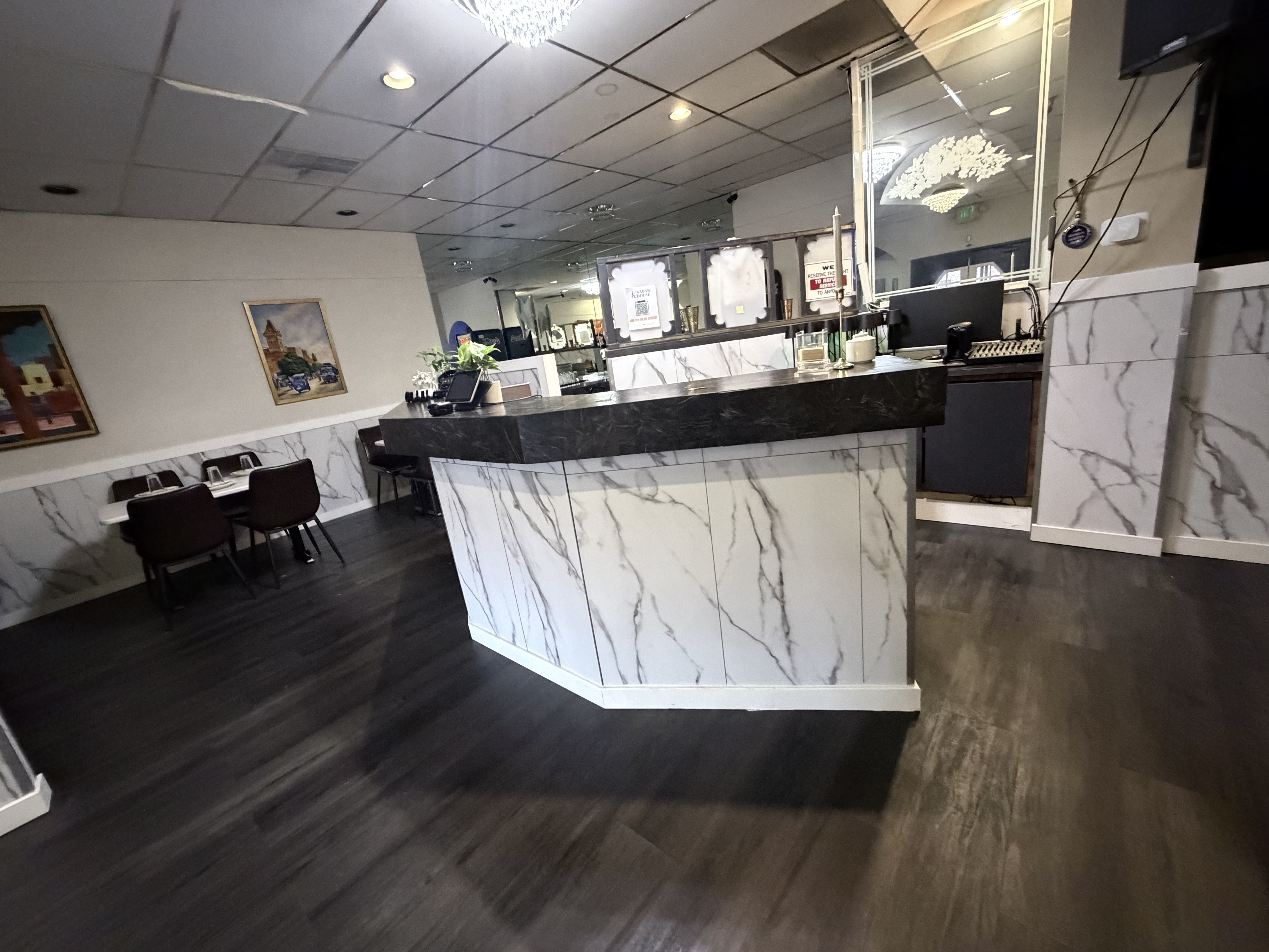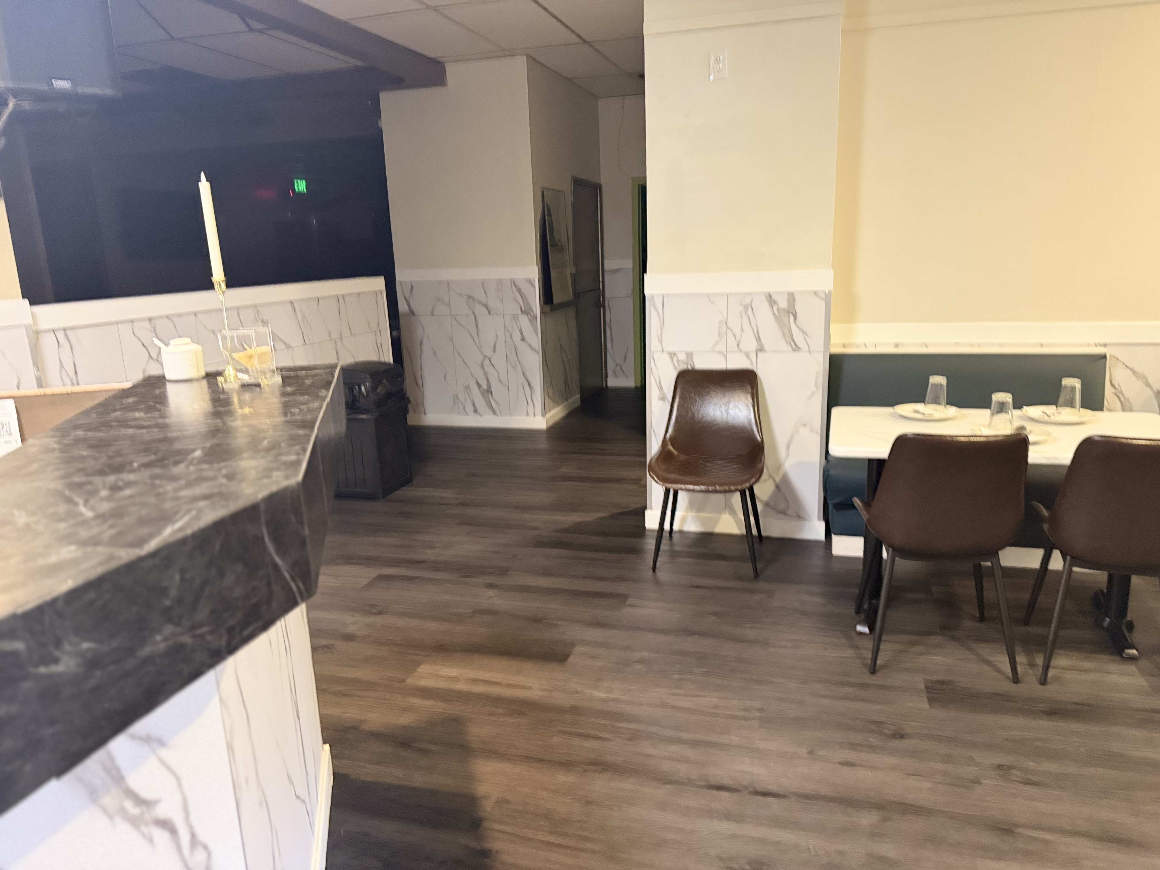 Renovation of a commercial space, flooring, paint, counters, furniture upholstery.